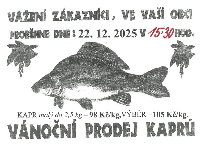 Vánoční prodej kaprů 22.12.2025 v 15:30
